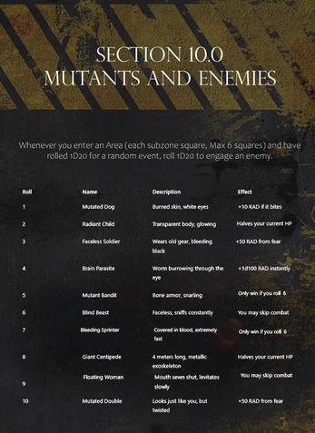 To play Z.O.N.E you will need 1D100, 1D20, 1D6!